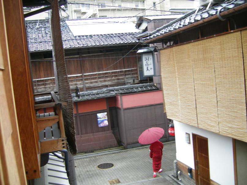 雨の中、お稽古に向かう芸妓さんの姿が!